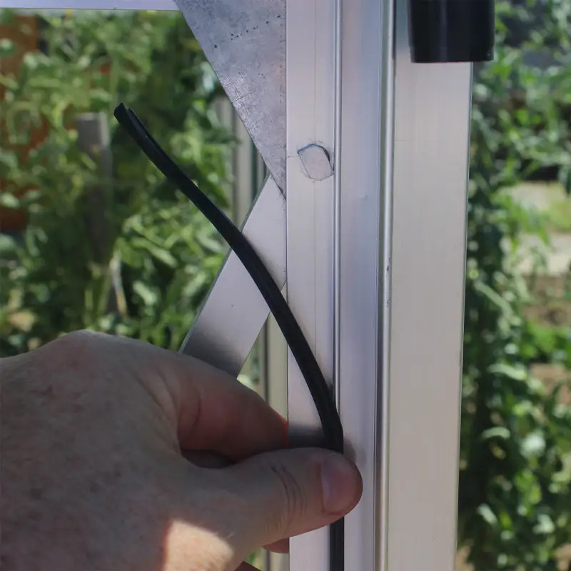 Junta que se adapta a perfil redondo de aluminio de diámetro 2 mm - para toda la gama Natura: invernaderos Allium, Aloé, Laurus, Carvi y Mélissa. La junta se desliza y se fija sobre los perfiles de aluminio y aísla el acristalamiento. Permite la estanqueidad.