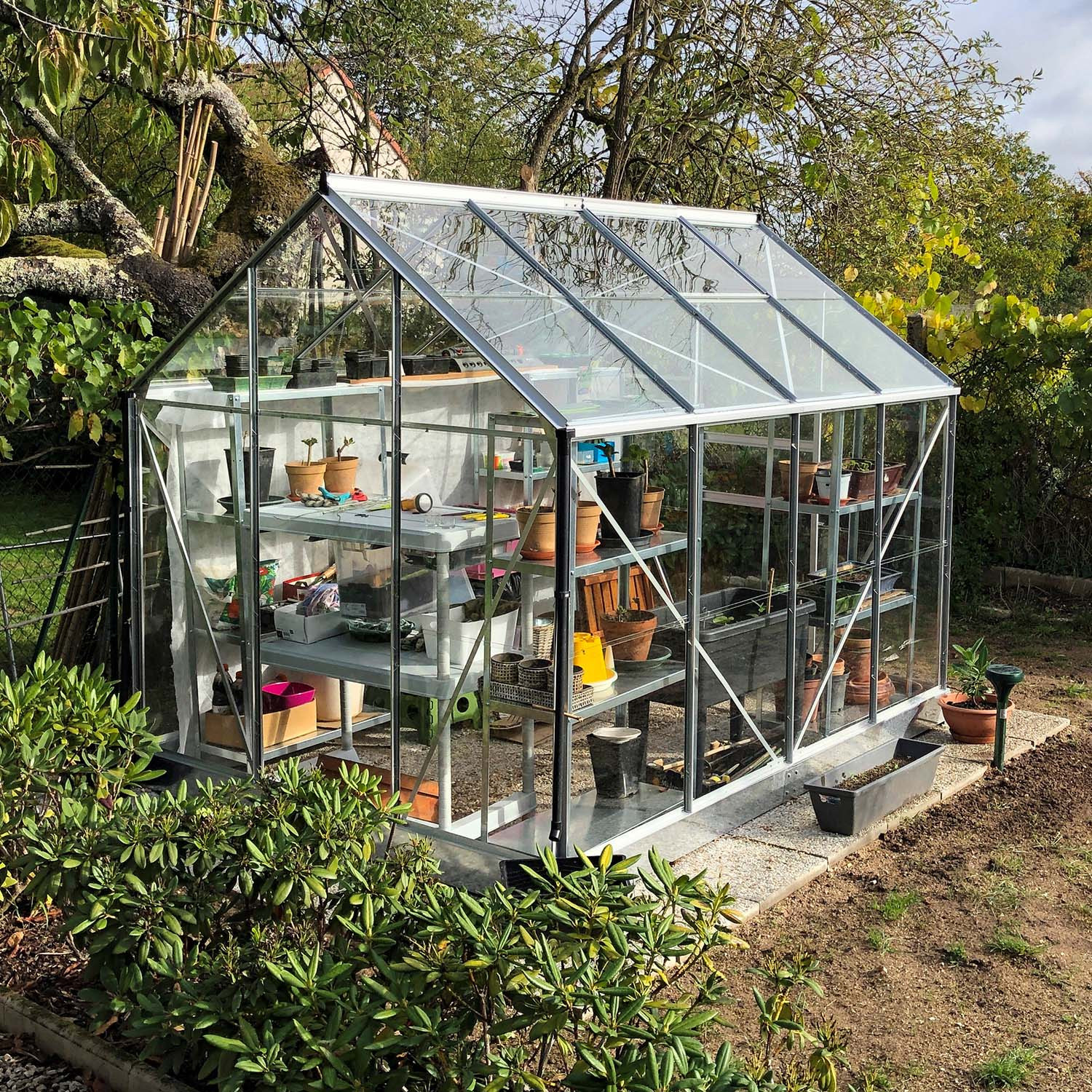 Los invernaderos en vidrio y aluminio LAMS Allium son adecuados para todos los jardineros, ya que sean principiantes o experimentados. Cultiva sus sembrados y plantas bajo techo y protege sus plantas del frío invernal.