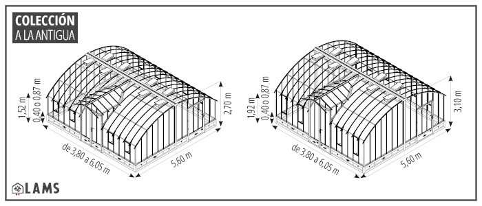 INVERNADERO ANTIGUO AMBOISE 5,60 M SOBRE BASE ALUMINIO