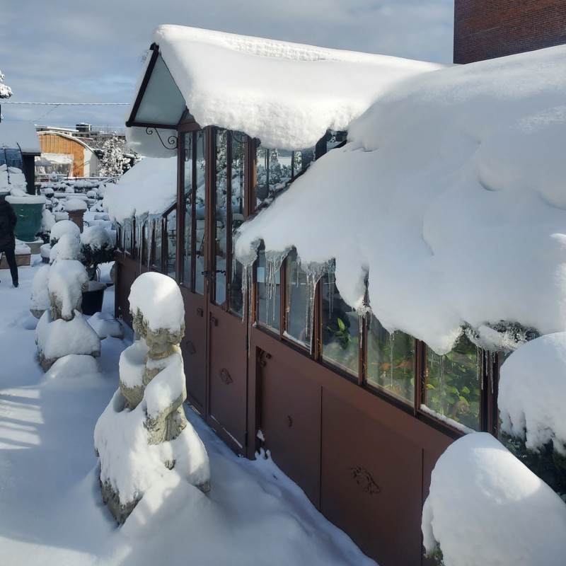 El acristalamiento en vidrio templado de 4 mm de espesor se fija con clips de acero inoxidable para una facilitar su instalación. El techo redondeado está compuesto por pequeñas tejas de vidrio templado para preservar el encanto de los invernaderos tradicionales.