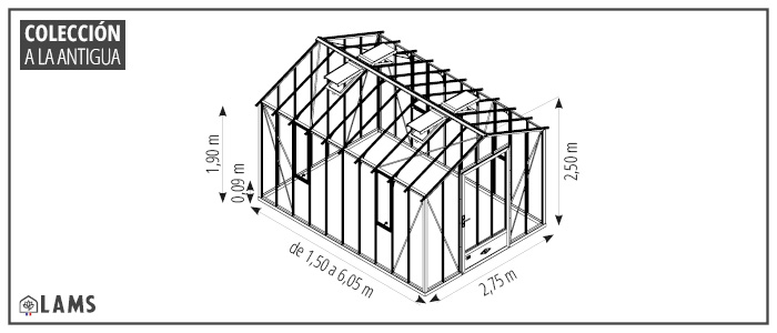 LAMS, fabricante especialista en invernadero y jardines de invierno desde hace más de 30 años pone su experiencia a su servicio: encuentre el invernadero que más le convenga en nuestra amplia colección de invernaderos de calidad, diseñados y fabricados en nuestros talleres de Vendée. A la vez un invernadero de cultivo, un refugio para sus plantas y un encantador jardín de invierno totalmente transparente, el invernadero antiguo AUTHENTIQUE de anchura 2,75 m LAMS le invita a cultivar el placer de vivir. Para su invernadero, hemos seleccionado materiales de calidad: