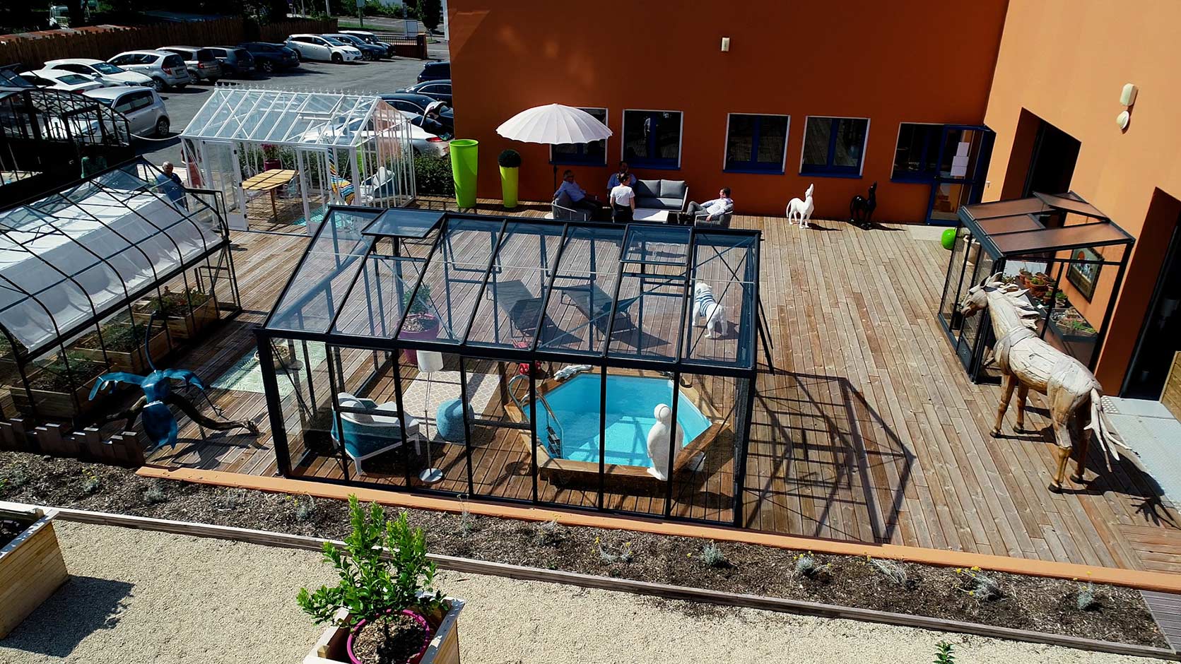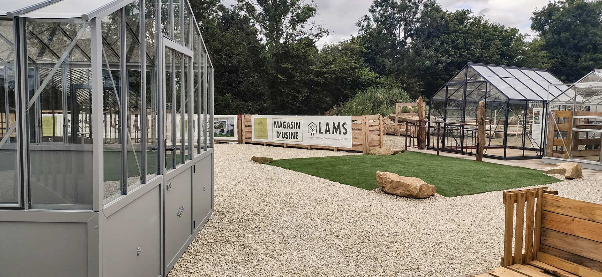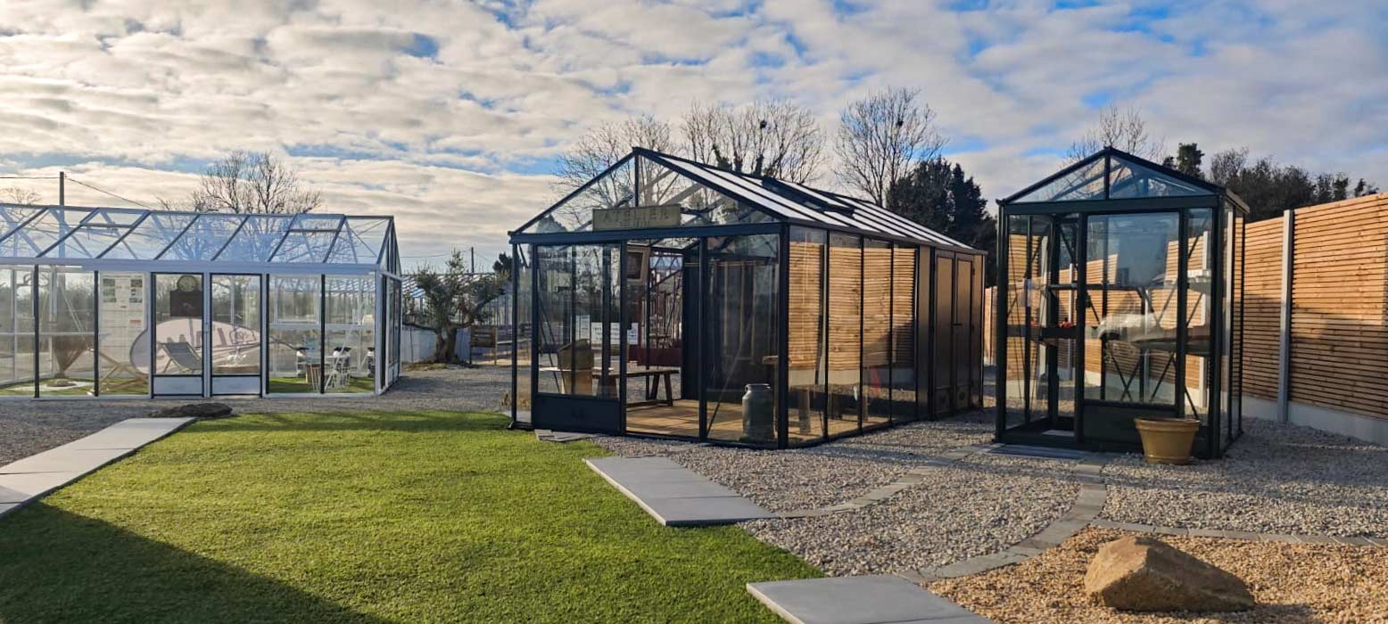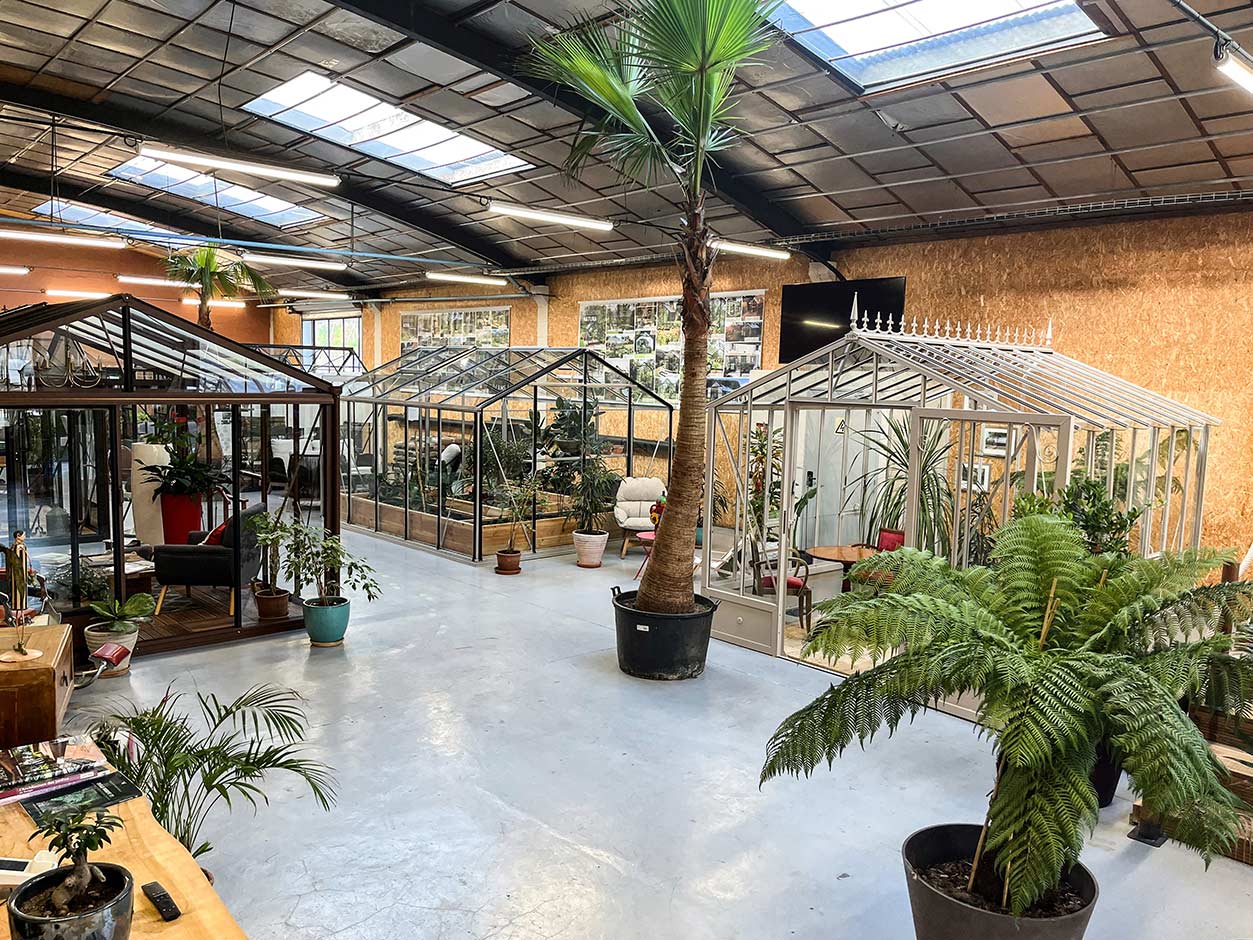 Nuestro showroom interior y exterior de más de 2 300 m² situado en La Châtaigneraie presenta una treintena de invernaderos escenificados.