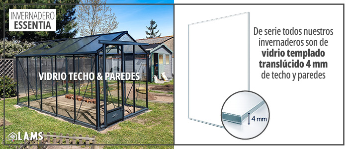 Las juntas y los perfiles de aluminio del invernadero ESSENTIA permiten colocar un cristal de 4 a 8 mm de espesor. Es por eso que podemos ofrecerle las siguientes opciones: