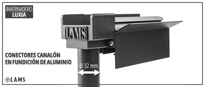 | Descenso de canalón | Incluido, un descenso de Ø 32 mm - En aluminio y lacado al color del invernadero |
