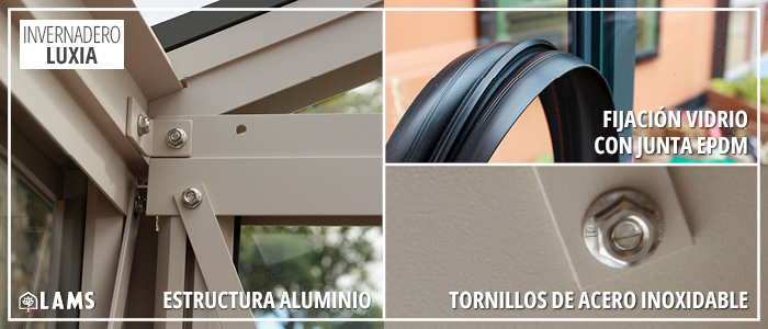 | Base | Incluida, altura 10 cm - En aluminio y lacado al color del invernadero |
