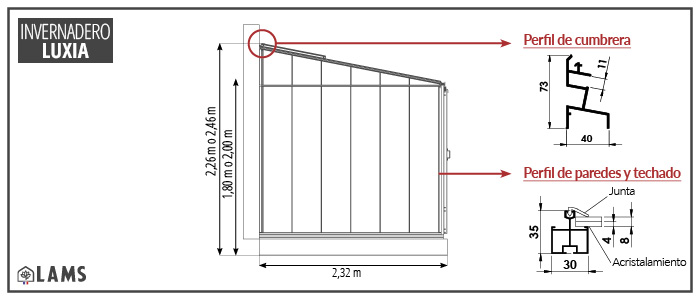Accesorios para Invernadero LUXIA Retro adosado anchura 2,32 m