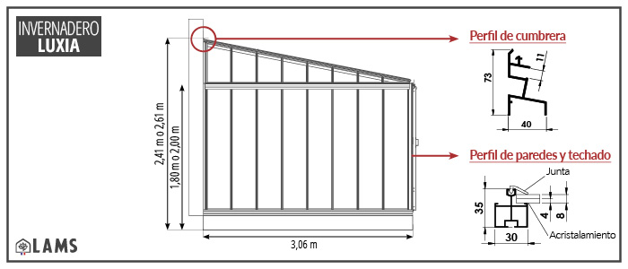 Accesorios para Invernadero LUXIA Retro adosado anchura 3,06 m