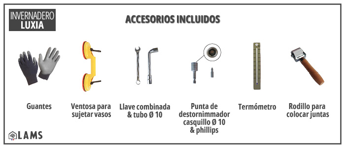 LOS ACCESORIOS SUMINISTRADOS CON EL INVERNADERO
