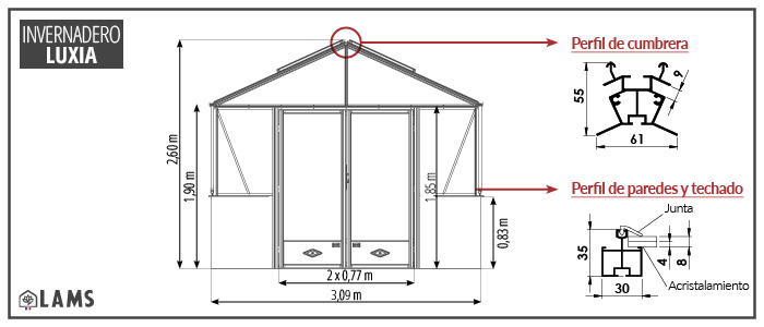 Accesorios para Invernadero LUXIA en muro bajo anchura 3,09 m