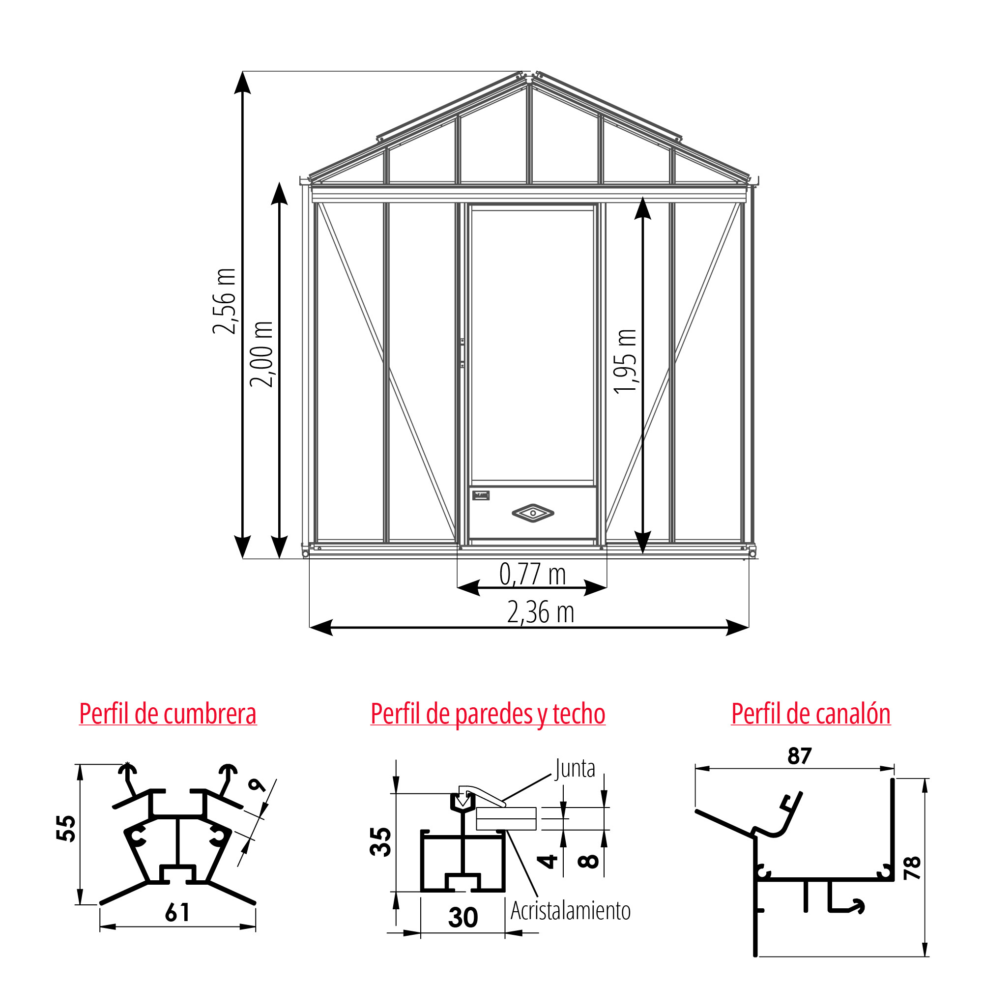 - Altura cumbrera: 2,56 m