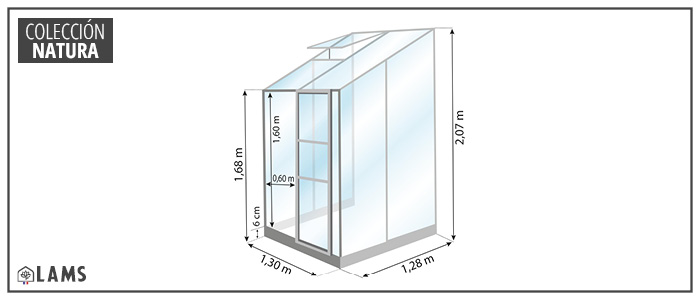 | Base | Incluida, altura 6 cm - En acero galvanizado y lacado al color del invernadero |
