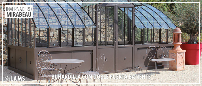 LAMS, fabricante especialista en invernadero y jardines de invierno desde hace más de 30 años pone su experiencia a su servicio: encuentre el invernadero que más le convenga en nuestra amplia colección de invernaderos de calidad, diseñados y fabricados en nuestros talleres de Vendée. A la vez un invernadero de cultivo, un refugio para sus plantas y un encantador jardín de invierno totalmente transparente, el invernadero antiguo MIRABEAU de anchura 3,70 m Lams le invita a cultivar el placer de vivir. Para su invernadero, hemos seleccionado materiales de calidad:
