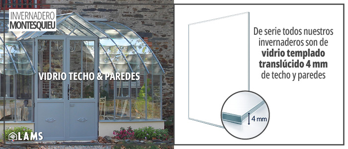 LAMSfabricante especialista en invernadero y jardines de invierno desde hace más de 30 años pone su experiencia a su servicio:  encuentre el invernadero que más le convenga en nuestra amplia colección de invernaderos de calidad, diseñados y fabricados en nuestros talleres de Vendée. A la vez un invernadero de cultivo, un refugio para sus plantas y un encantador jardín de invierno totalmente transparente, el invernadero antiguo MONTESQUIEU de anchura 2,80 m Lams le invita a cultivar el placer de vivir. Para su invernadero, hemos seleccionado materiales de calidad: