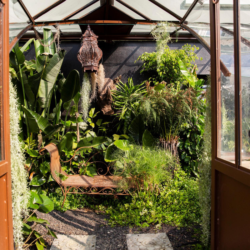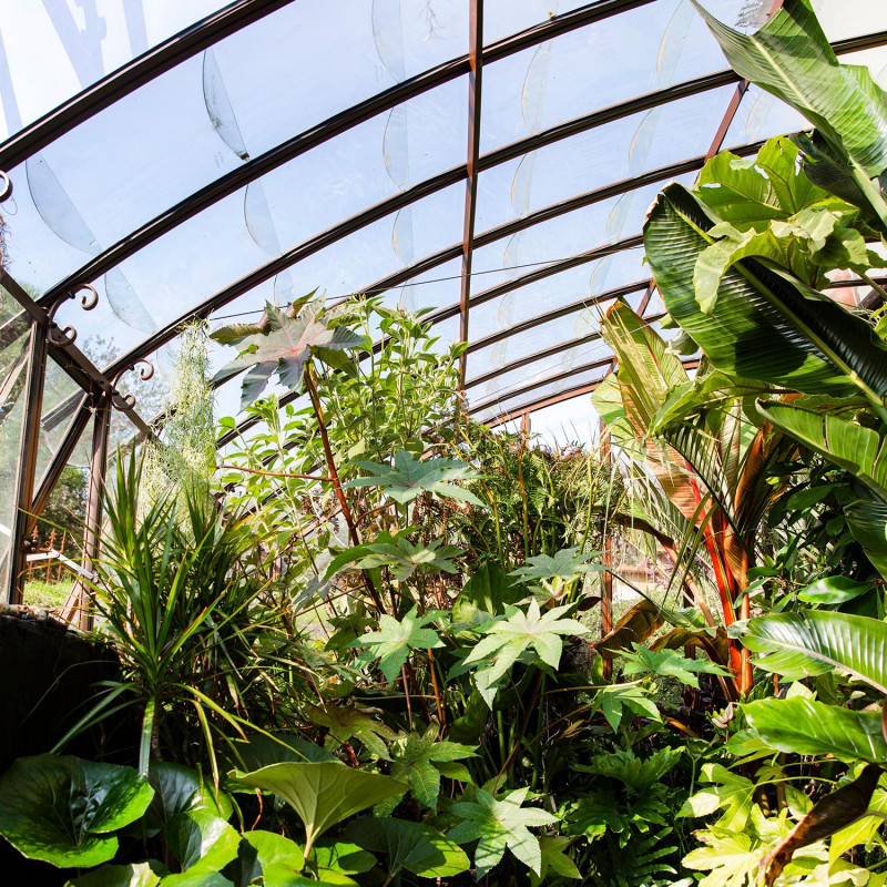El acristalamiento en vidrio templado de 4 mm de espesor se fija con clips de acero inoxidable para una facilitar su instalación. El techo redondeado está compuesto por pequeñas tejas de vidrio templado para preservar el encanto de los invernaderos tradicionales.