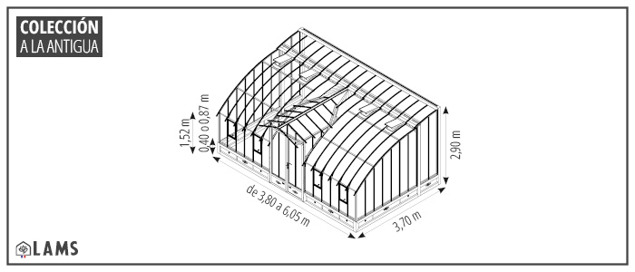 LAMS, fabricante especialista en invernadero y jardines de invierno desde hace más de 30 años pone su experiencia a su servicio: encuentre el invernadero que más le convenga en nuestra amplia colección de invernaderos de calidad, diseñados y fabricados en nuestros talleres de Vendée. A la vez un invernadero de cultivo, un refugio para sus plantas y un encantador jardín de invierno totalmente transparente, el invernadero antiguo MONTESQUIEU de anchura 3,70 m Lams le invita a cultivar el placer de vivir. Para su invernadero, hemos seleccionado materiales de calidad: