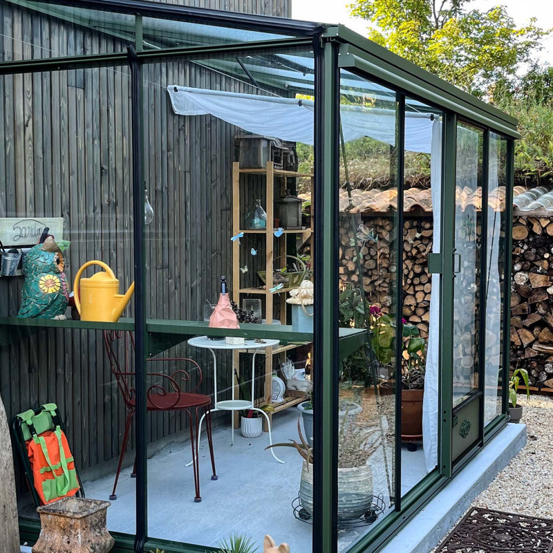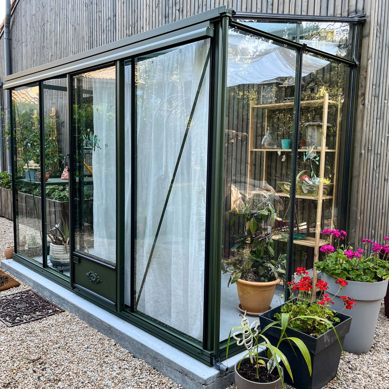 Sistema de sombreado en kit completo: fijaciones y velo previstos para los invernaderos Lams Luxia y Luxia Rétro adosados de profundidad 1,58 m. Seleccione la longitud de fachada de su invernadero.