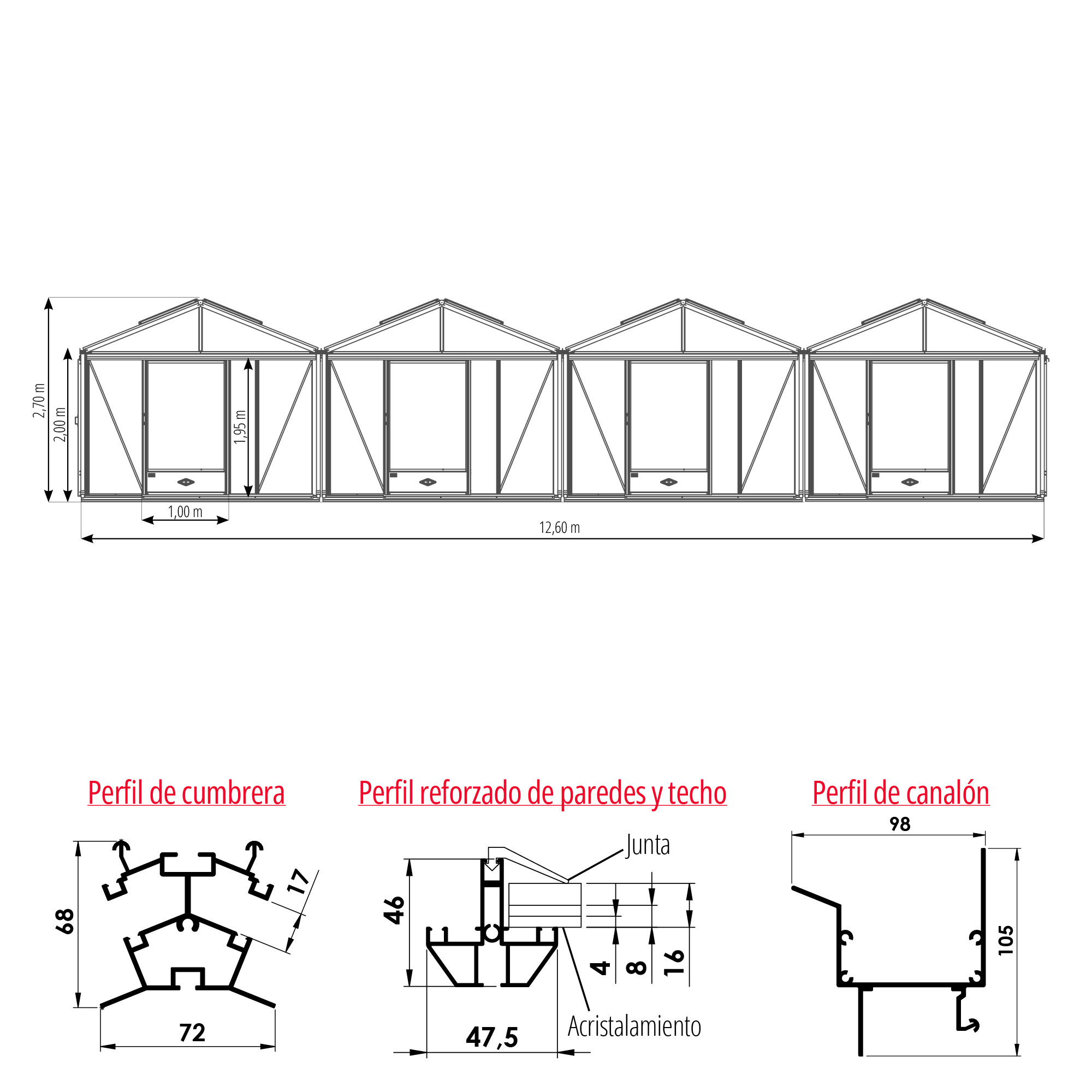 | Tipo de invernadero | A dos aguas (autoportante) |