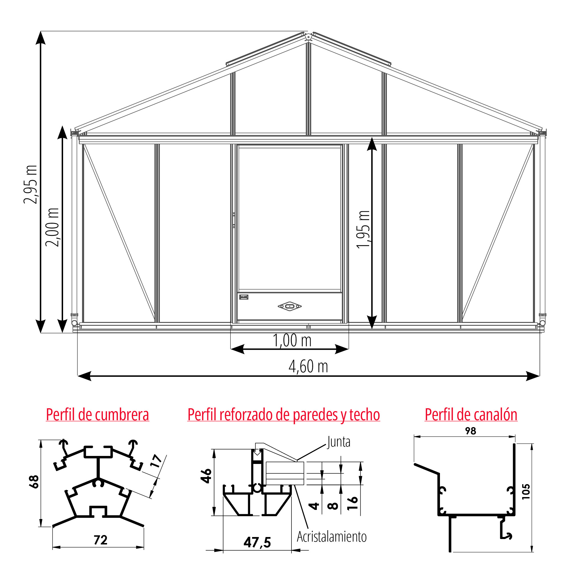 | Base | Incluida, altura 10 cm - En aluminio y lacado al color del invernadero |